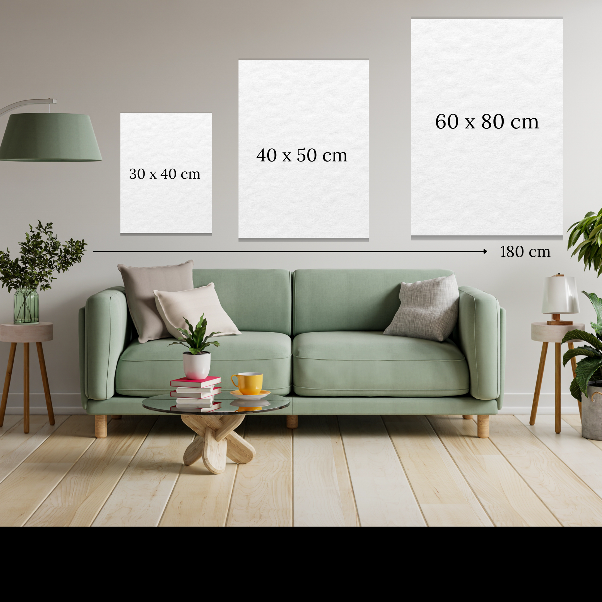 • Large: 24 x 32" (60 x 80 cm) – A true statement piece for above the sofa or bed.